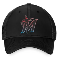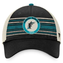 Men’s Florida Marlins Fanatics Branded Black/White Cooperstown Collection Core Trucker Snapback Hat