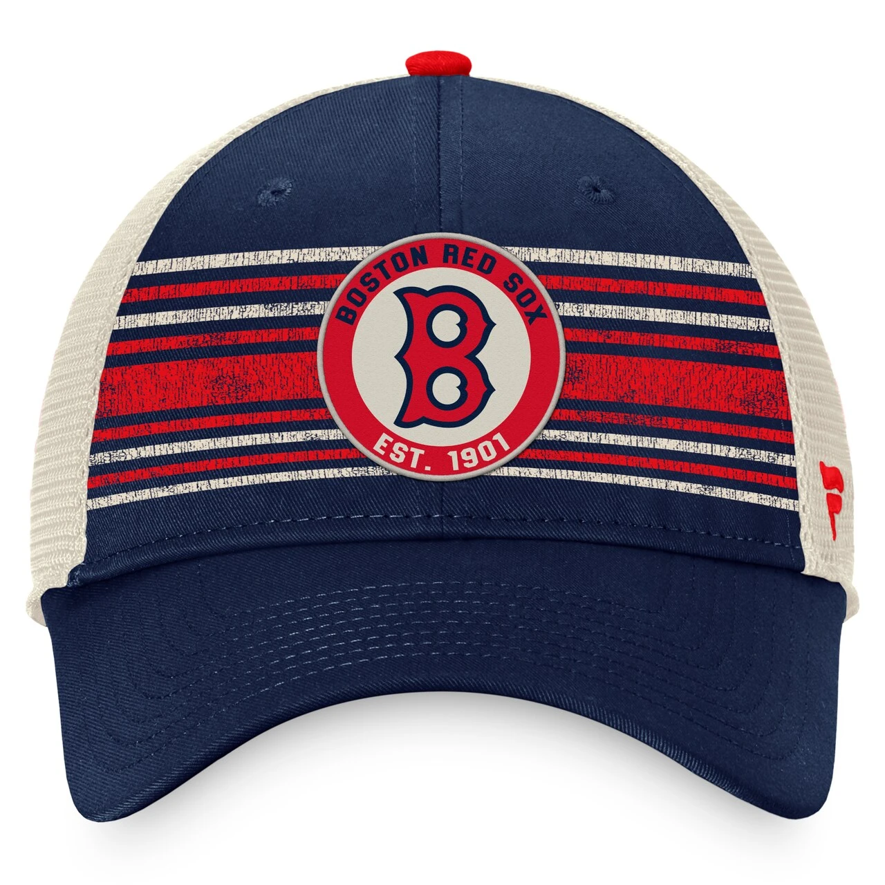 Men’s Boston Red Sox Fanatics Branded Navy/Natural True Classic Retro Striped Trucker Snapback Hat