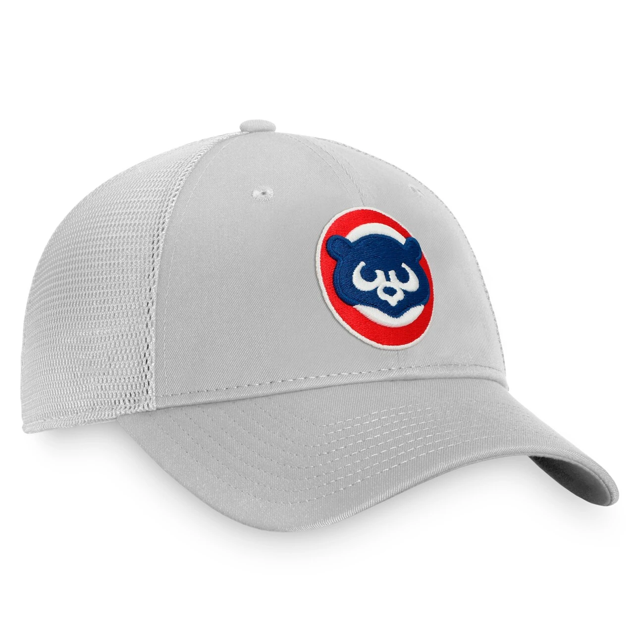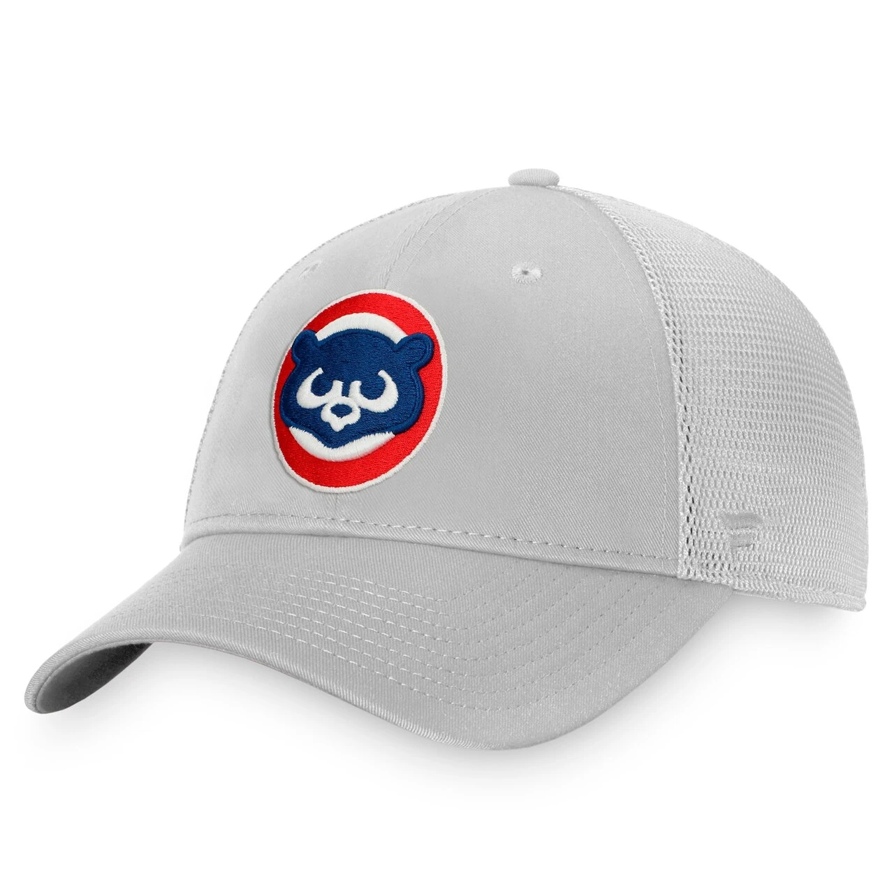 Men’s Chicago Cubs Fanatics Branded Gray/White Cooperstown Collection Core Trucker Snapback Hat