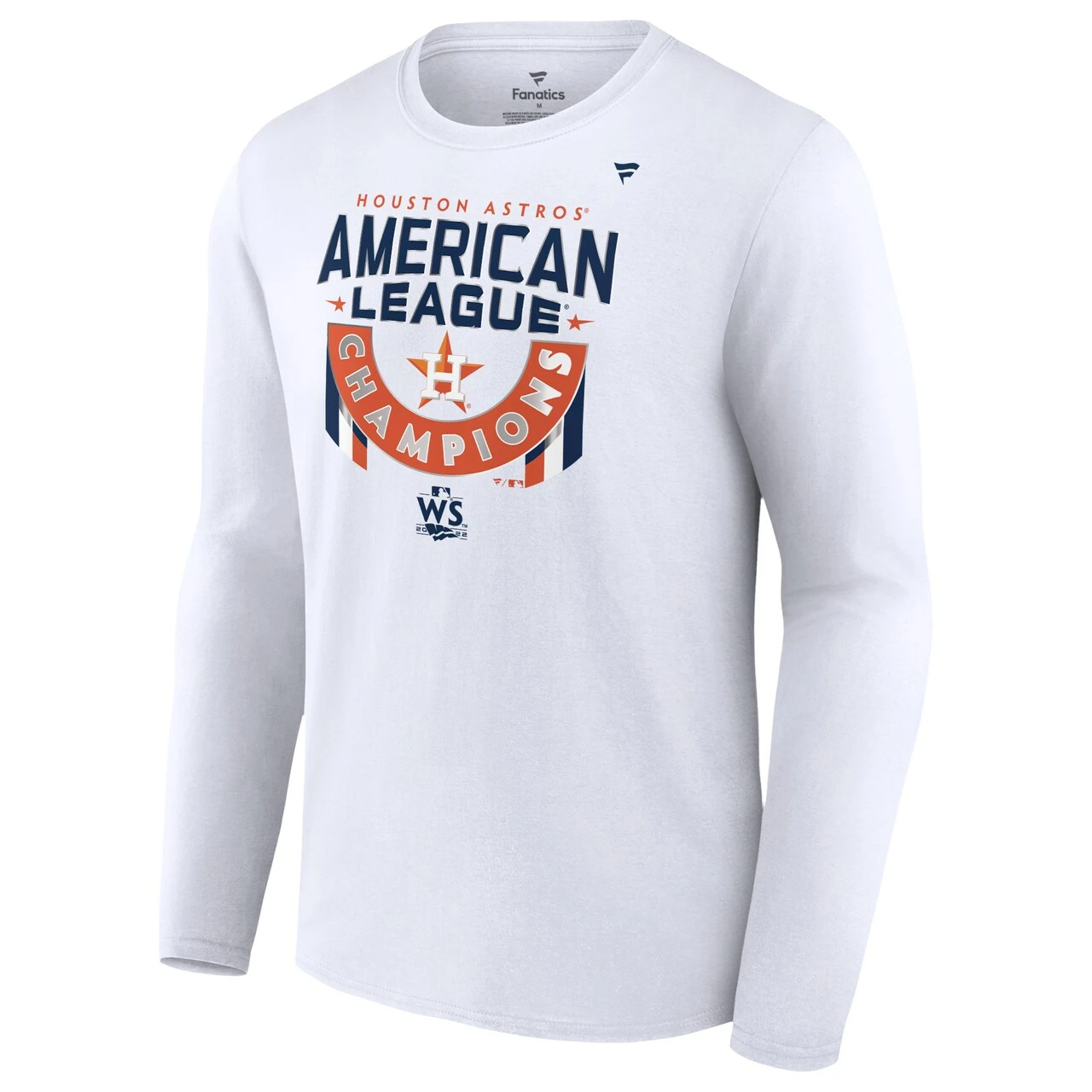 Men’s Houston Astros Fanatics Branded White 2022 American League Champions Locker Room Long Sleeve T-Shirt