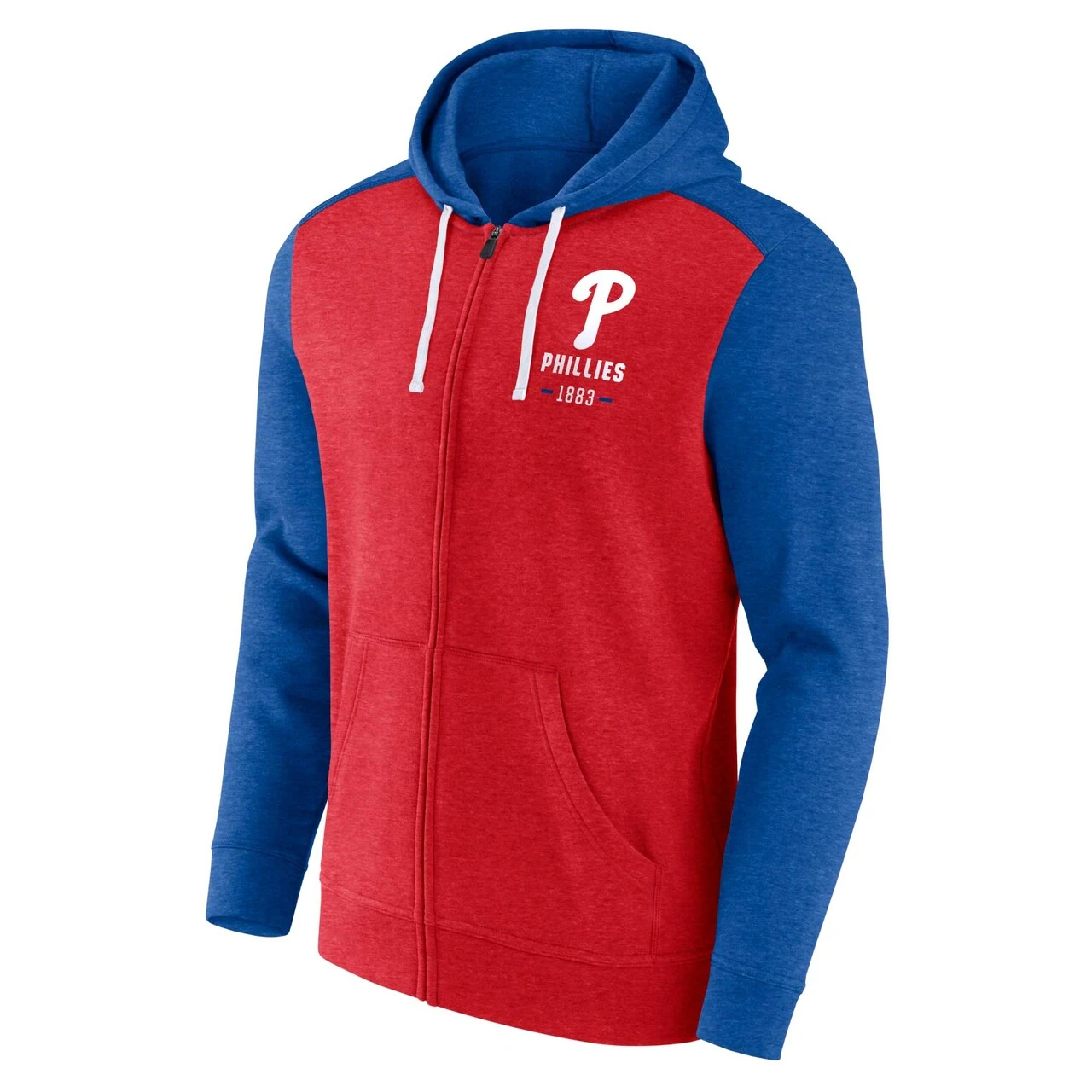 Men’s Philadelphia Phillies Fanatics Branded Heather Red/Heather Royal Blown Away Full-Zip Hoodie