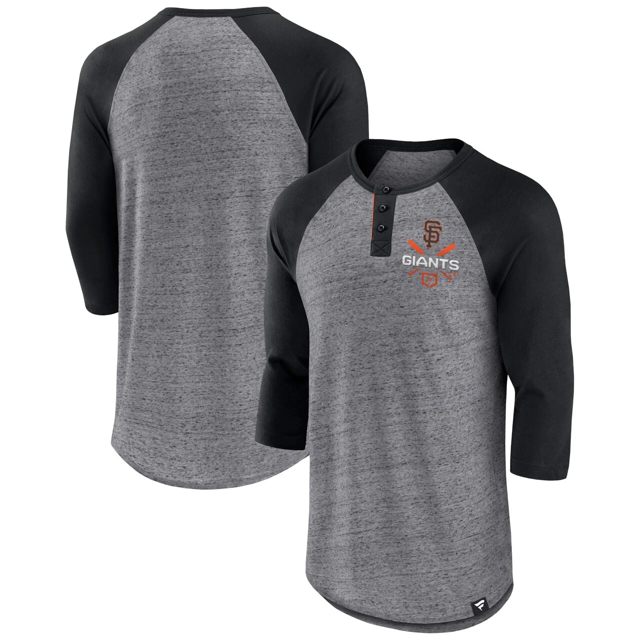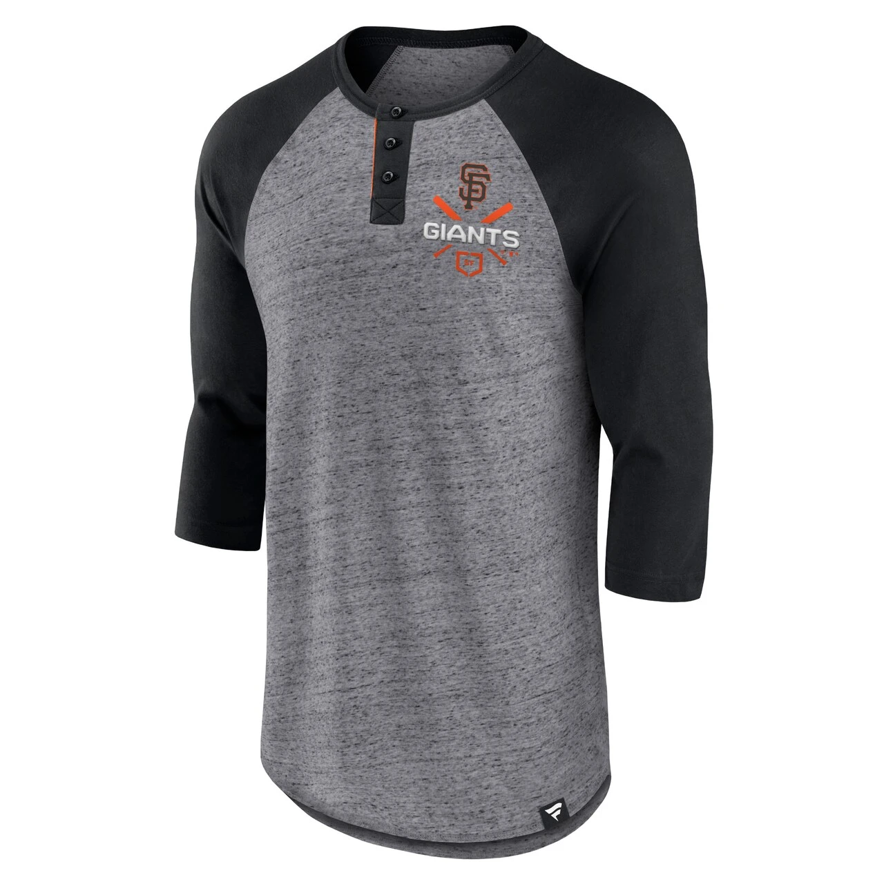 Men’s San Francisco Giants Fanatics Branded Heathered Gray/Black Iconic Above Heat Speckled Raglan Henley 3/4 Sleeve T-Shirt