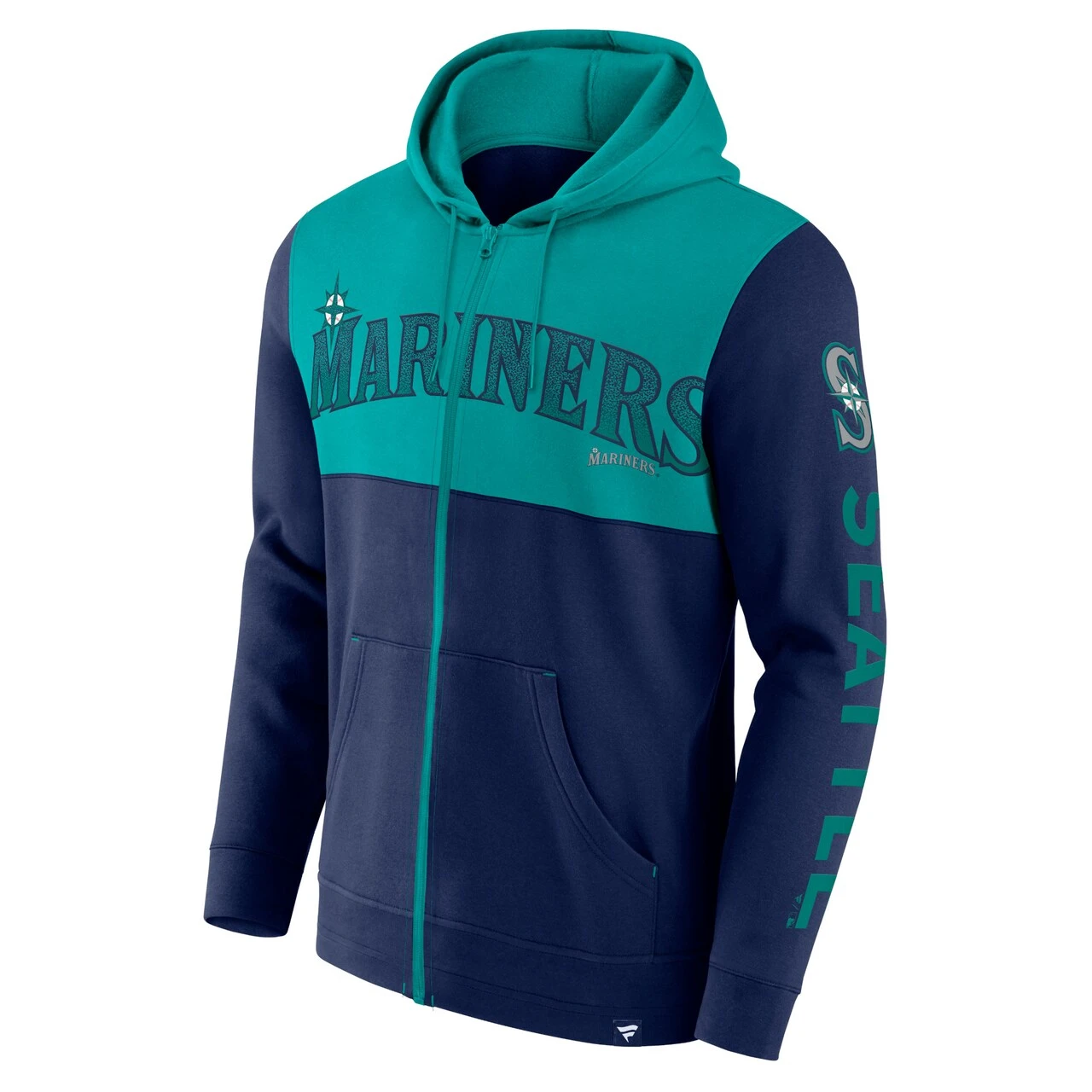 Show that your Seattle Mariners pride is unshakable even in cooler temperatures by grabbing this Walk Off hoodie from Fanatics Branded. Between an unmistakable Seattle Mariners wordmark that runs across the chest, a team logo on the left sleeve and the two-toned colors, the full-zip hoodie leaves no doubt who you root for. The integrated fleece lining also provides an added layer of comfort, while its two front pockets offer convenient small-item storage.