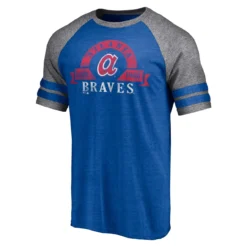 Men’s Atlanta Braves Fanatics Branded Heather Royal Utility Two-Stripe Raglan Tri-Blend T-Shirt