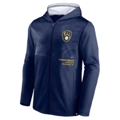 Men’s Milwaukee Brewers Fanatics Branded Heathered Navy/Heathered Gray Blown Away Full-Zip Hoodie