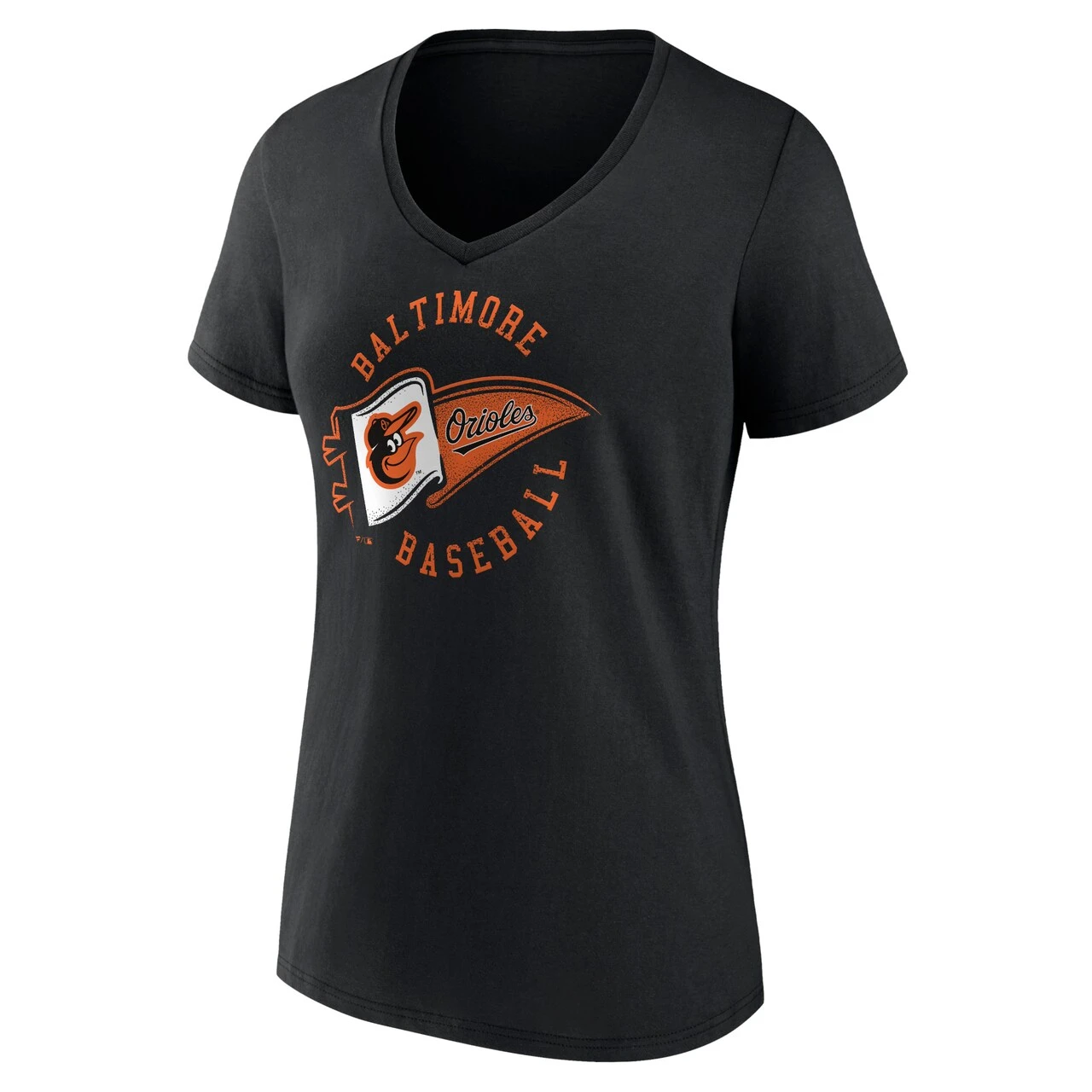 Women’s Baltimore Orioles Fanatics Branded Black Hometown Baltimore Pennant V-Neck T-Shirt