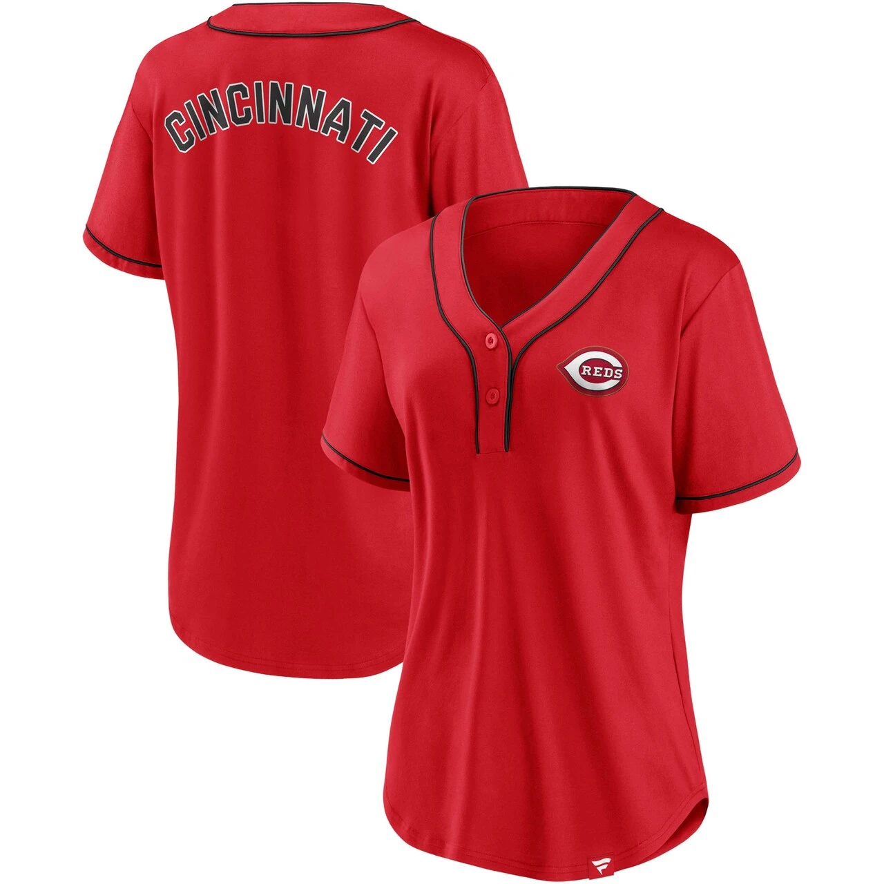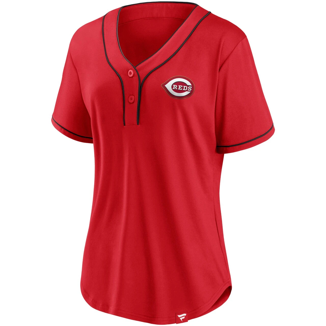 Step up your Cincinnati Reds gear with this Iconic Diva T-shirt by Fanatics Branded. This jersey-inspired top features a vibrant Cincinnati Reds design with contrast-color stitching for a bit of flair. Plus, the two-button placket and droptail hem offer extra coverage so you can feel all the more comfortable on game day.