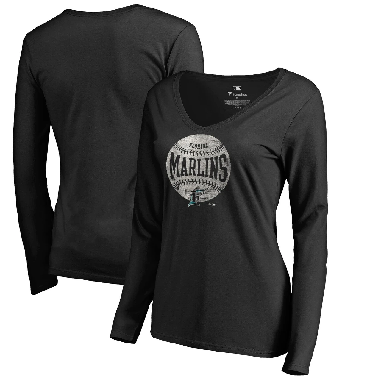 Women’s Florida Marlins Fanatics Branded Black Cooperstown Collection Slider Long Sleeve V-Neck T-Shirt