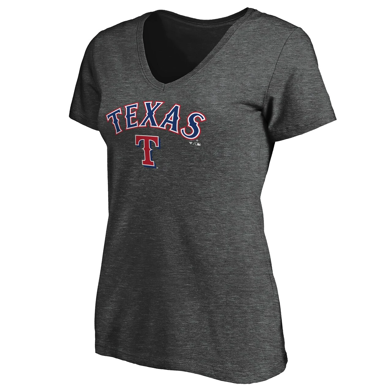 Women’s Texas Rangers Fanatics Branded Heathered Charcoal Team Logo Lockup V-Neck T-Shirt
