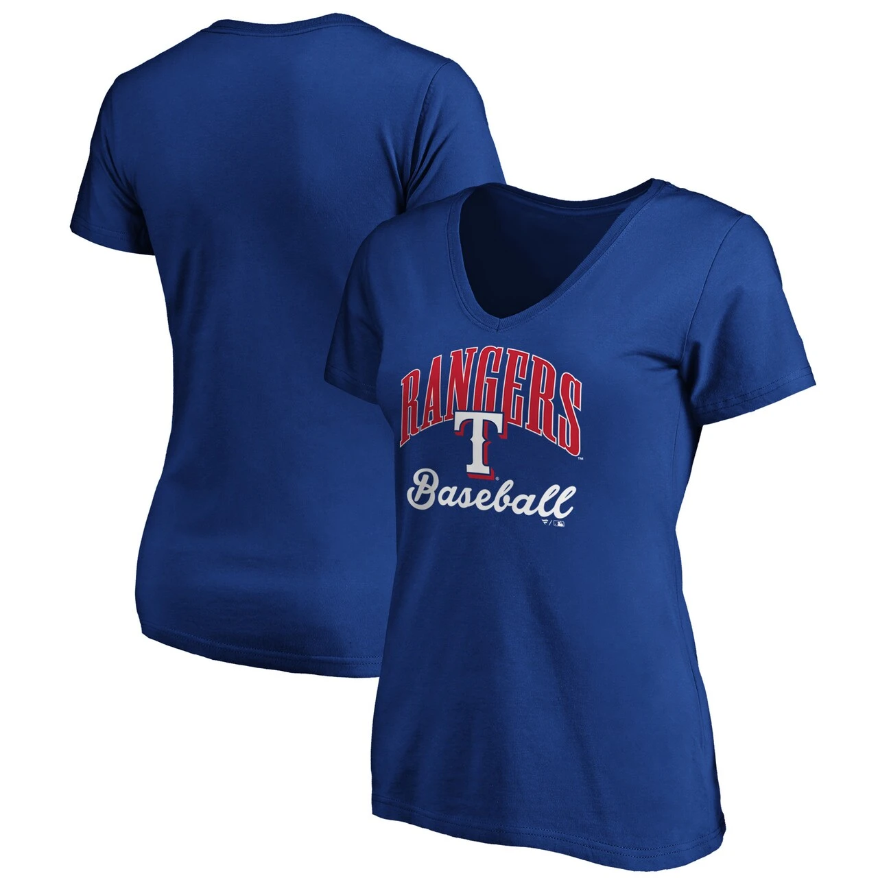 Women’s Texas Rangers Fanatics Branded Royal Victory Script V-Neck T-Shirt