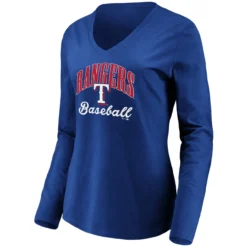 Women’s Texas Rangers Fanatics Branded Royal Victory Script V-Neck Long Sleeve T-Shirt